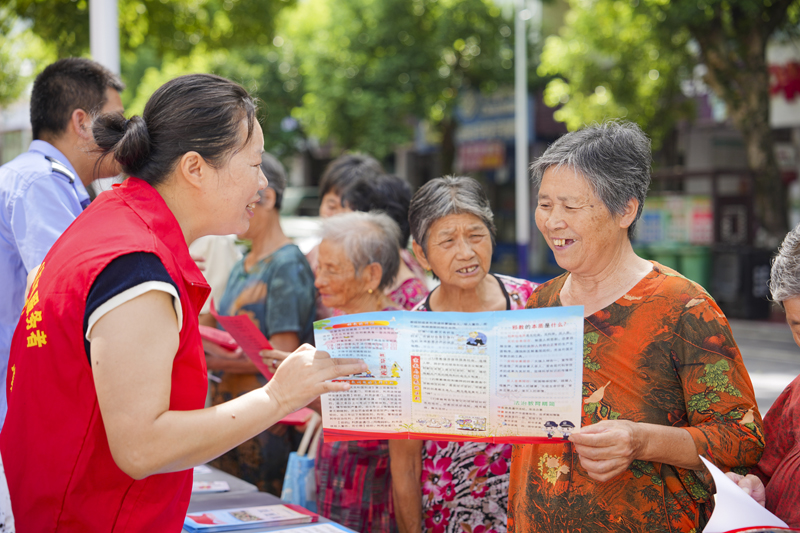 8月5日,江西省撫州市南豐縣洽灣鎮洽灣村農貿市場,黨員志愿者在向村民普及法律知識。謝東攝 2025年8月5日,江西省撫州市南豐縣洽灣鎮開展普法宣傳活動,通過面對面宣講、發放宣傳資料等形式,向村民講解防范非法集資、電信網絡詐騙、民法典等法律知識,引導廣大群眾更好地知法、學法、守法、用法,依法維護自身合法權益,筑牢鄉村法治防線?!?/a>