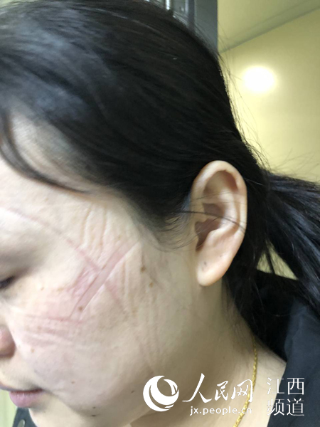 由于雙手長時間受到橡膠手套、消毒液和洗手液的侵蝕,皮膚干裂受損。臉上也因為長時間佩戴防護鏡、口罩,留下了深深的壓痕。