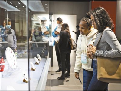十月二十八日,在江西景德鎮中國瓷器博物館,非洲青年代表在精美瓷器前駐足欣賞。