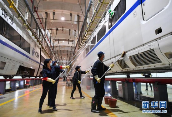 2021年春運即將拉開帷幕,中國鐵路南昌局集團有限公司福州動車段以“保安全、保秩序、保質量”為目標,開展春運前整修工作,對執行春運任務的動車走行部、制動裝置、牽引裝置、車內設施及防寒設備進行嚴格檢查,做到動車組零故障出庫,同時對動車進行防疫消殺,保障春運乘客旅途安全。