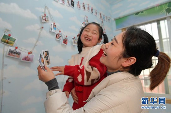 在江西九江的家中,王阿靜和大女兒一起看一家人以前的照片(1月25日攝)。新華社記者 彭昭之 攝
