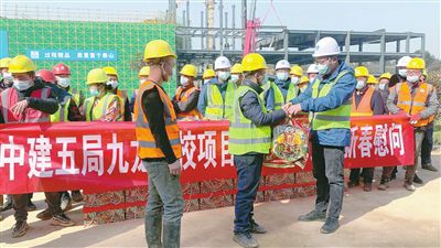 興城學校項目由中建五局承建,去年7月開工,計劃今年8月交付使用,是當地重點民生工程,今年春節有36名員工就地過年。