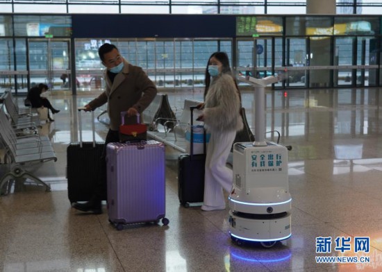 2月8日,機器人在南昌西站候車大廳內進行消殺。