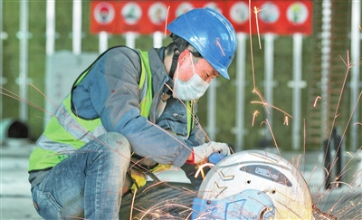 2月13日,景德鎮陶文旅控股集團有限公司項目建設基地,工人在忙著切割建筑材料。春節期間,當地許多外地務工人員選擇就地過年,堅守崗位,保障項目運轉和施工進度。