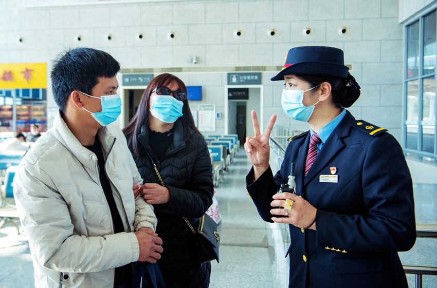 干了28年鐵路客運工作的巫鐵蕓,迎來職業生涯的最后一個春運!癎1604次列車在這邊排隊候車!薄澳俏慌,請把你的口罩戴好!薄皫『⒌某丝,請看管好自己的小孩,不要越過安全黃線!蔽阻F蕓一會在進站口手舉小喇叭,溫馨地提示著進站候車的旅客;一會在候車大廳里,耐心解答旅客咨詢;一會又出現在站臺上,有序組織旅客上下車。