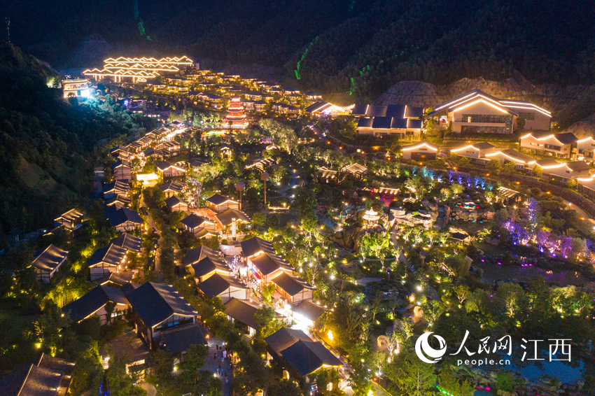 夜幕降臨,鉛山縣葛仙村,燈光璀璨,古韻十足。子波攝