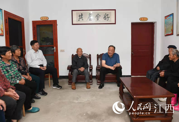 5月25日,新余市委書記蔣斌(前排右)到掛點村分宜縣金雞布村開展“講黨史、辦實事”活動。凌厚祥攝