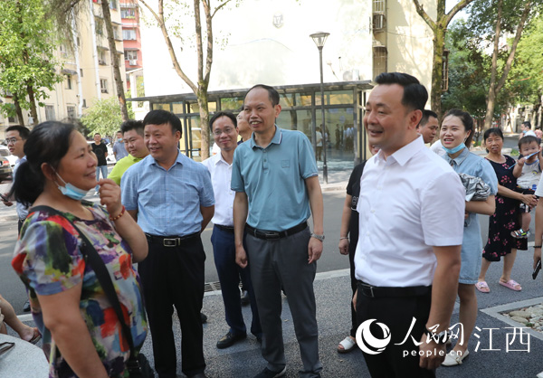8月3日,萍鄉市委書記陳敏在金陵小區傾聽居民對老舊小區改造的建議和訴求。梁永明攝