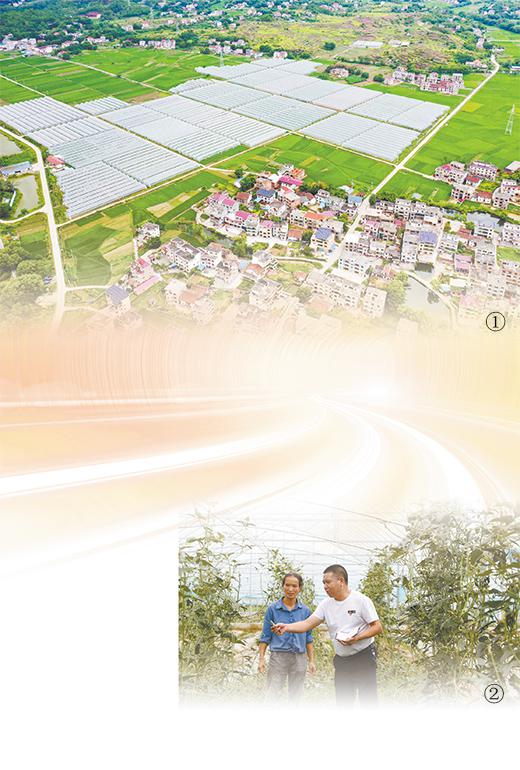 圖②:興國縣長岡鄉塘石村黨總支書記謝建平在大棚蔬菜基地了解基地發展情況。