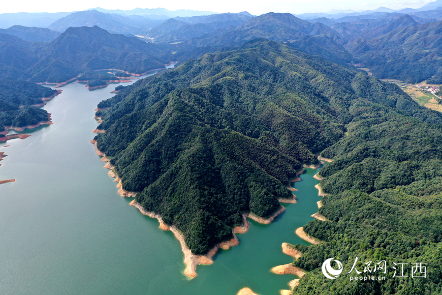 航拍江西宜黃觀音山水庫:山青水綠 峽谷綿長