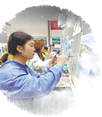 年輕畫師在江西黎川繪制油畫。鄭海鷗攝
