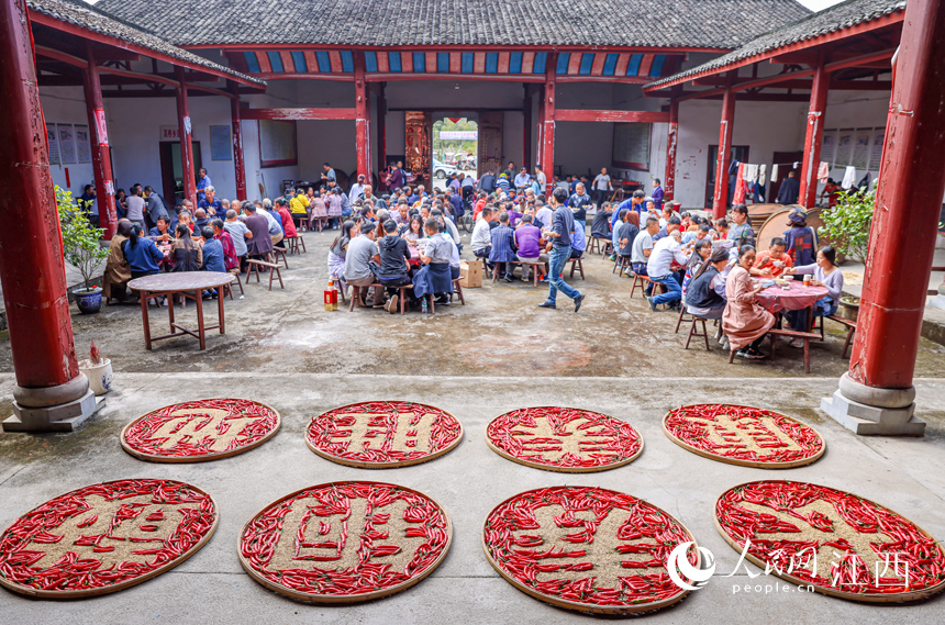 人民網南昌10月14日電 10月13日上午,在江西省銅鼓縣高橋鄉膽坑村的長壽廣場,舉辦了一場喜慶熱鬧的長壽文化旅游節,百余名60歲以上的老人胸帶紅花齊聚一堂,接受來自五湖四海賓客的祝福,共慶重陽佳節。