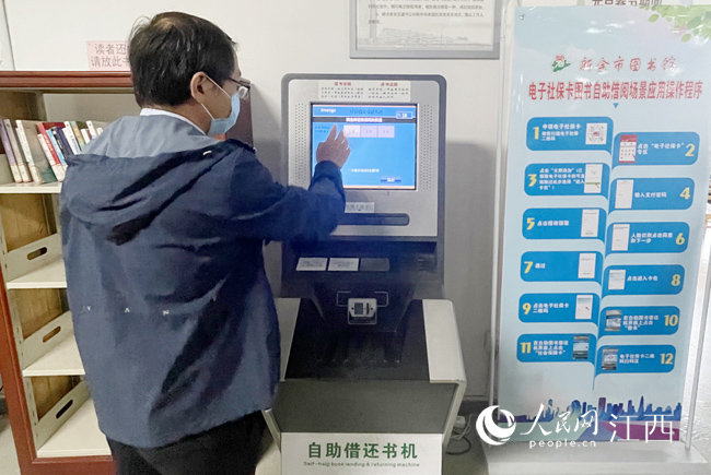 人民網新余10月15日電(張志斌)“將電子社?ǘS碼打開放在這里輕輕一掃,點擊借閱書籍,不到10秒就可以完成借書了……”10月14日,新余市圖書館技術部負責人蔣曉云一邊在自助借還書機操作,一邊贊譽社?ā耙豢ㄍā苯o借閱圖書帶來的方便快捷。