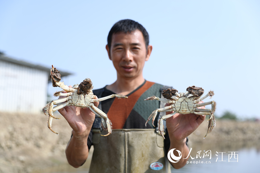 人民網南昌11月4日電 (記者 邱燁)稻穗金黃,蝦肥蟹壯。連日來,在共青城市江益鎮金華螃蟹養殖基地,到處都是豐收美景。