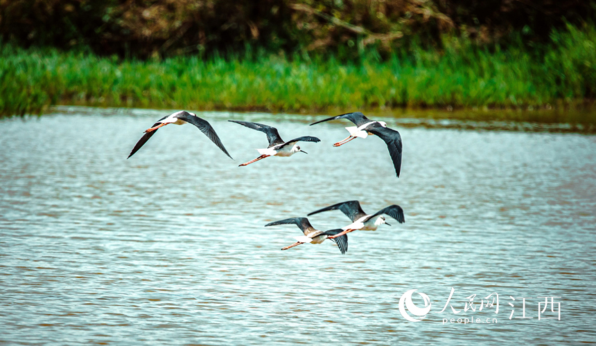 11月10日,候鳥在共青南湖濕地自然保護區飛翔。楊牧青攝