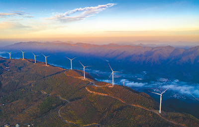 11月23日,江西省瑞昌市洪下鄉蜈蚣山風電場在朝霞、云海的映襯下,展現出一幅美麗畫卷。近年來,瑞昌市大力發展清潔能源,推動能源低碳轉型,一座座風車迎風旋轉,將綠色能源輸入千家萬戶。