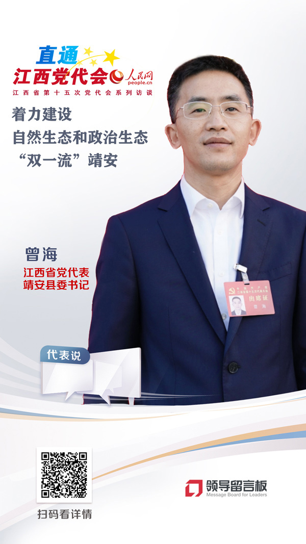 【編者按】昂首奮進新征程,接續奮斗再出發。在江西省第十五次黨代會召開之際,人民網推出“作示范 勇爭先 對話黨代表”系列訪談節目,邀請黨代表話心聲、謀發展。今天邀請到曾海代表,以下為訪談實錄: