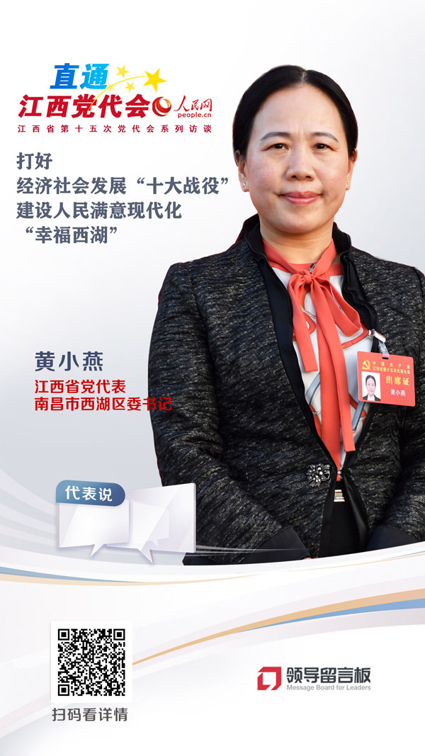 人民網:中國共產黨江西省第十五次代表大會已經開幕,易煉紅同志代表中國共產黨江西省第十四屆委員會作的報告,吹響了未來五年江西發展的號角。請問黃小燕代表,西湖區將如何貫徹落實省十五次黨代會精神?