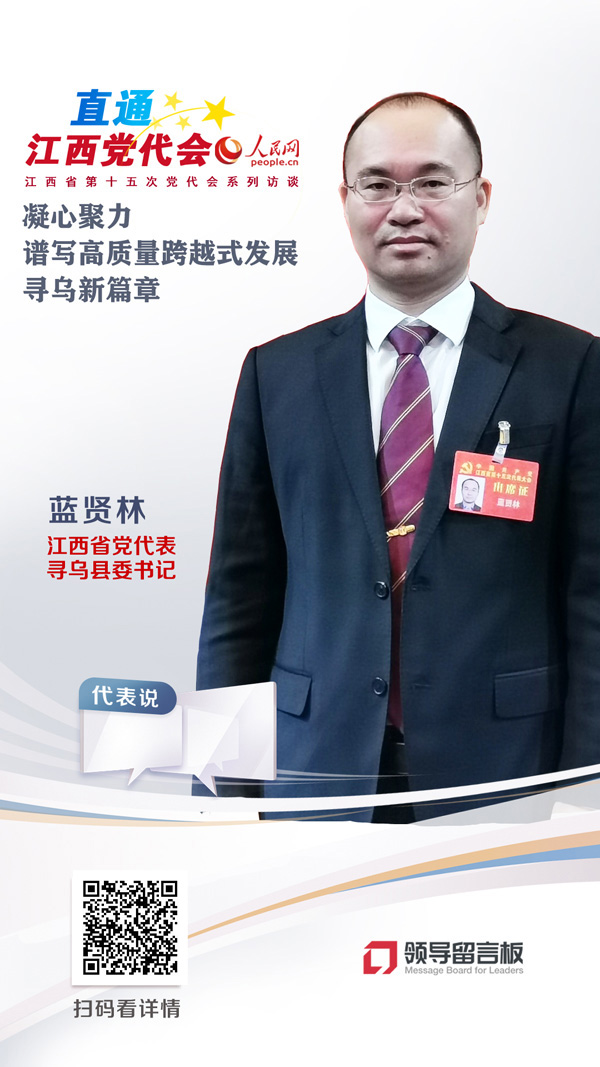 人民網:在江西省第十五次黨代會開幕大會上,易煉紅同志代表中共江西省第十四屆委員會作的報告,描繪了江西未來五年改革發展新畫卷。請問藍賢林代表,尋烏縣將如何貫徹落實省第十五次黨代會精神?