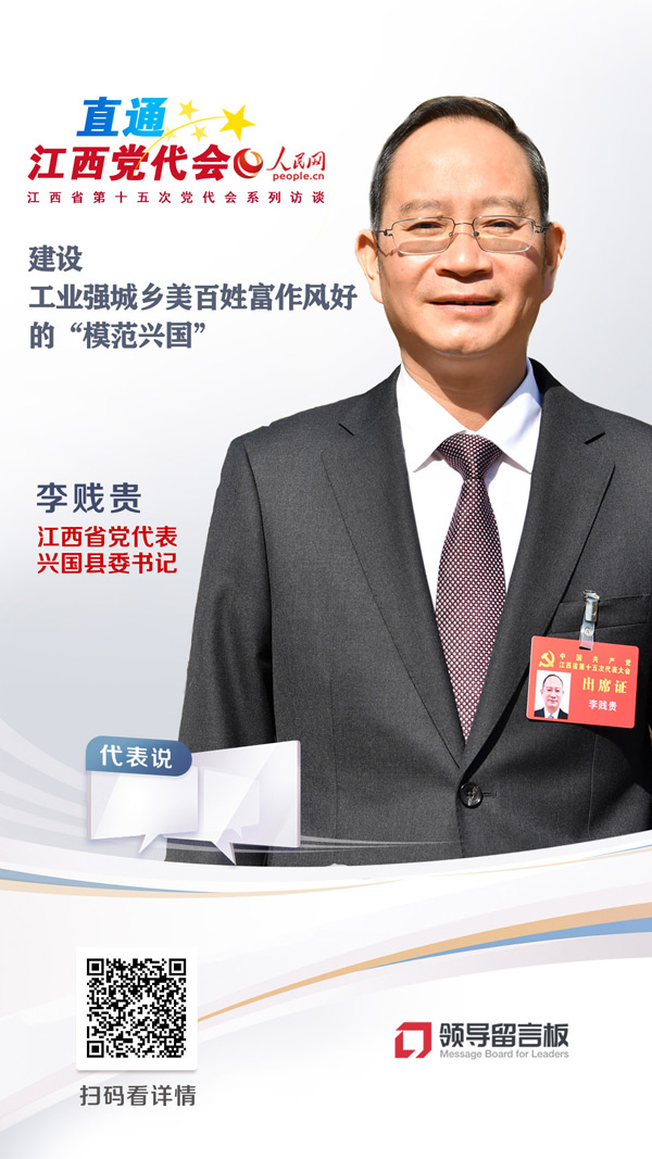 【編者按】昂首奮進新征程,接續奮斗再出發。江西省第十五次黨代會勝利召開,人民網推出“作示范 勇爭先 對話黨代表”系列訪談節目,邀請黨代表話心聲、謀發展。今天邀請到李賤貴代表,以下為訪談實錄: