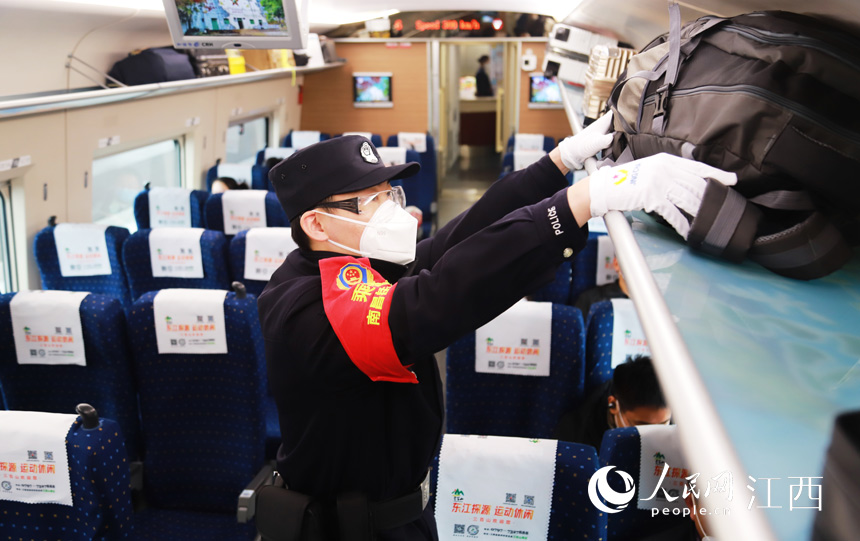 G2763/5022次高鐵是2022年1月開通的“贛深高鐵”熱門車次,每趟客流基本上都能達到滿員,作為列車這個“流動社會”的守護者,張海龍不僅承擔著維護列車安全的職責,還要確保旅客旅行途中的健康。
