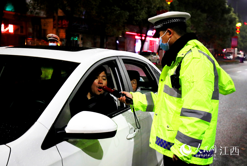 1月31日中國農歷除夕,交警在宜豐縣新昌中大道查酒駕。何賤來攝