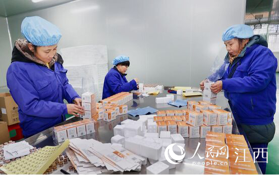 春節期間,贛江新區極尊堂中藥制藥有限公司內,工人們正在進行產品裝箱。贛江新區供圖