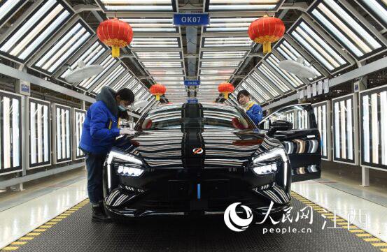 正月初一,年味正濃。而位于南昌經開區的江鈴集團新能源汽車公司工廠的生產車間內,工人在車輛前專注地忙碌著。
