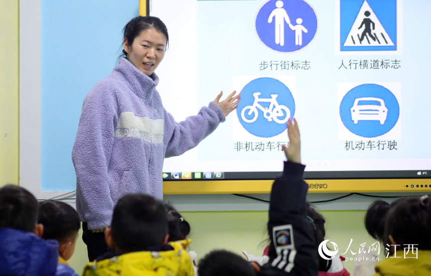 安全教育課上,孩子們積極參與互動。何賤來攝