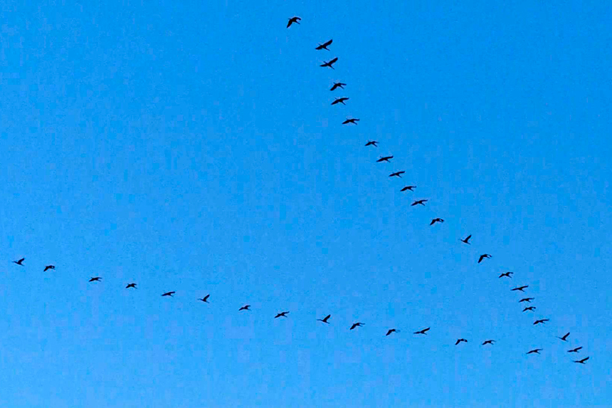 翱翔在空中的雁群。況建攝