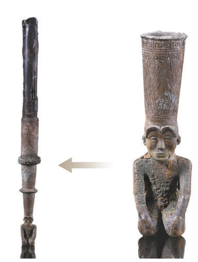 國字山戰國墓葬出土銅跽坐人鐓。
