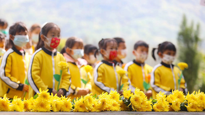 幼兒園的孩子們向革命先烈獻花。陳旗海攝