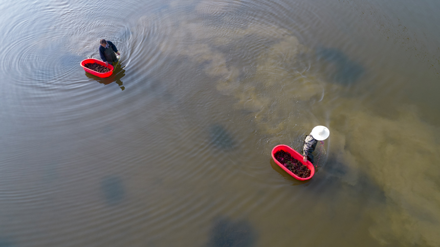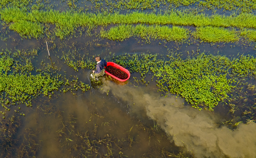 農戶起籠捕獲小龍蝦供應市場。趙春亮攝
