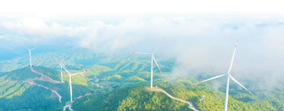 風能太陽能氣象預報是氣象服務的一項基本業務,為國家新能源發展保駕護航。圖為江西贛州市會昌縣清溪鄉盤古嶂風力發電場。朱海鵬攝(人民視覺)