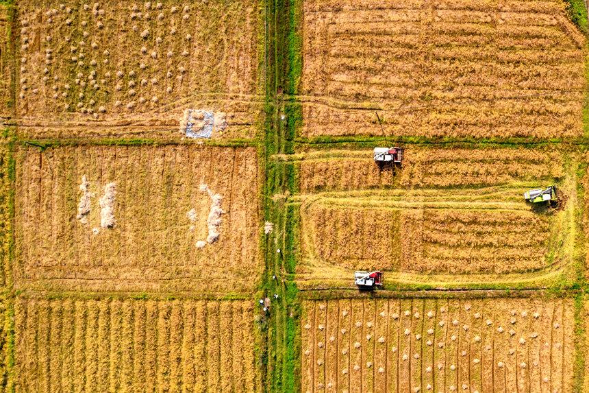 5月6日,農戶正在江西省萍鄉市湘東區排上鎮橋頭村收割油菜。肖南波攝