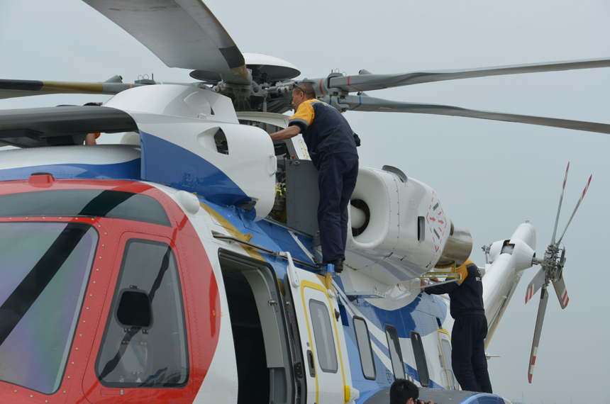 “吉祥鳥”AC313A正在進行起飛前的安全檢查。張翼攝