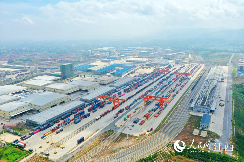 航拍鏡頭下的贛州國際港。 人民網 時雨攝