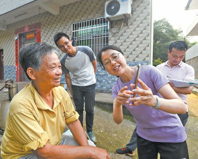 醫療保障對于防止群眾因病致貧返貧具有重要作用。圖為在江西省樟樹市劉公廟鎮北坑村,駐村第一書記張蠑(右二)和工作隊隊員、村干部上門為村民辦理電子醫?せ顦I務,宣傳普及醫療救助相關政策。周 亮攝(影像中國)