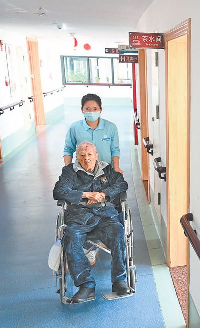 近年來,福建省晉江市積極推進長期護理保險試點工作,為長期失能人員提供服務。圖為護理人員在晉江市社會福利中心照料參保長護險的老人。新華社記者 林善傳攝