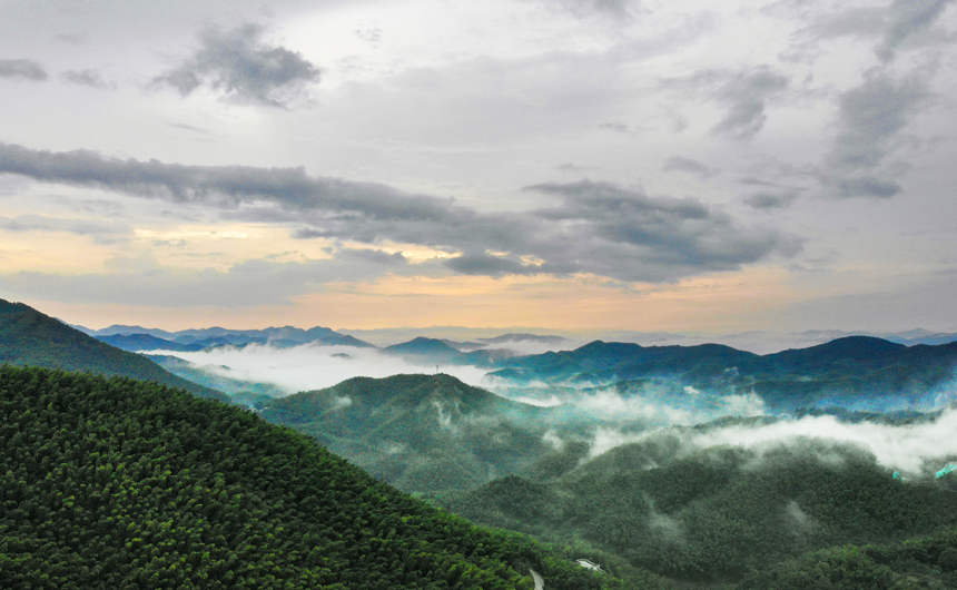 村莊與山巒在霧氣的籠罩下若隱若現。劉卿攝