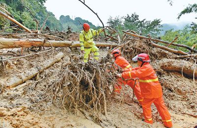 14日,江西省贛州市全南縣一處道路發生山體滑坡,當地第一時間組織人員開展搶險救援。