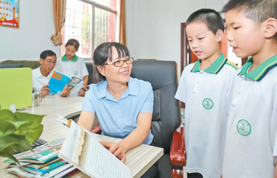 李建珍(右三)、李志剛(左一)在辦公室輔導學生。李桂東攝