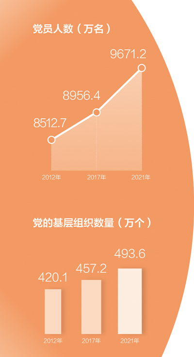 以習近平同志為核心的黨中央深入推進新時代黨的建設新的偉大工程,9600多萬名黨員、490多萬個基層黨組織以精神之光照亮前行之路,在各地區各領域發揮著先鋒模范作用和戰斗堡壘作用,匯聚起干事創業的強大合力。