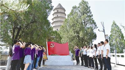 黨員在陜西延安市寶塔山重溫入黨誓詞。新華社記者 張博文攝