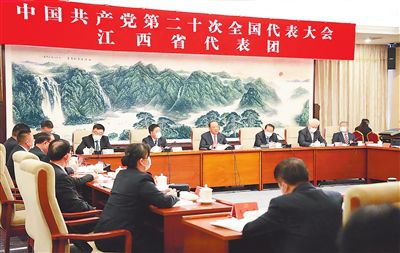 10月17日上午,黨的二十大江西省代表團在住地舉行全體會議,認真學習、深刻領會黨的二十大精神。記者海波攝