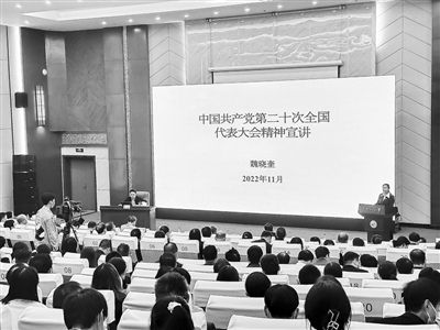 報告會上,魏曉奎從“黨的二十大主要成果、重大歷史意義”“全面深刻領會黨的二十大精神,堅定不移沿著習近平總書記指引方向繼續前進”“深入貫徹落實黨的二十大的部署要求,凝心聚力全面建設社會主義現代化江西”等三個方面,對黨的二十大精神進行了系統全面、生動精彩的解讀和闡釋。