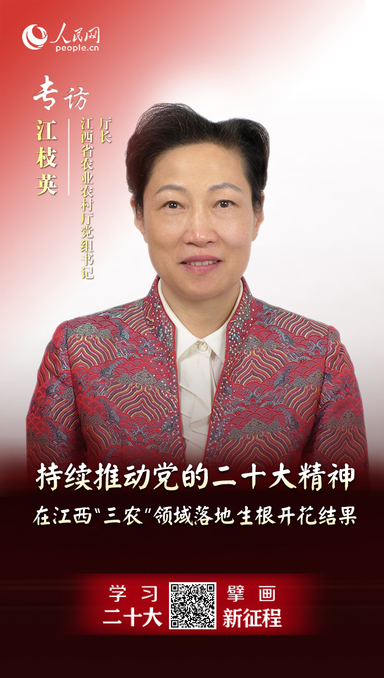 【編者按】為深入學習宣傳貫徹黨的二十大精神,把思想統一到黨的二十大精神上來,把力量凝聚到黨的二十大確定的各項任務上來,人民網江西頻道聯合江西省委網信辦網絡新聞傳播和評論處推出“學習二十大,擘畫新征程”系列訪談節目,聚焦江西各地各部門如何精心組織“學”,廣泛深入“講”,結合實際“干”,推動黨的二十大精神落實到發展的各方面,以踔厲奮發、勇毅前行姿態奮進新征程。近日,江西省農業農村廳黨組書記、廳長江枝英接受了我們的專訪,以下為訪談實錄: