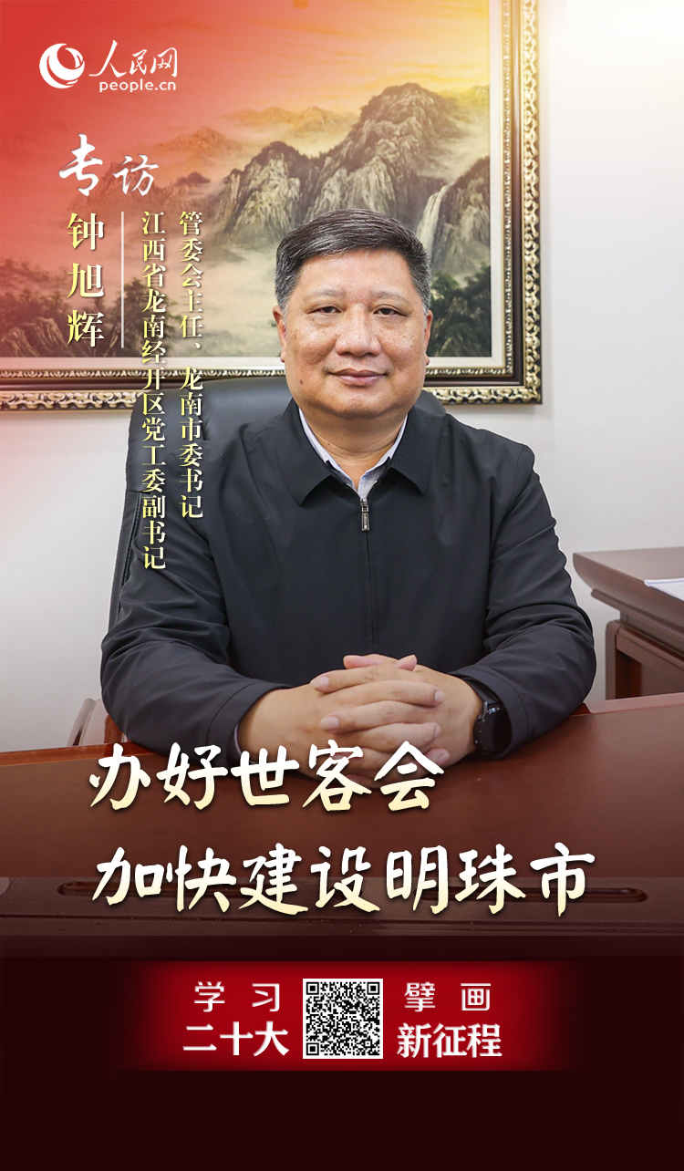 【編者按】為深入學習宣傳貫徹黨的二十大精神,把思想統一到黨的二十大精神上來,把力量凝聚到黨的二十大確定的各項任務上來,人民網江西頻道聯合江西省委網信辦網絡新聞傳播和評論處推出“學習二十大,擘畫新征程”系列訪談節目,聚焦江西各地各部門如何精心組織“學”,廣泛深入“講”,結合實際“干”,推動黨的二十大精神落實到發展的各方面,以踔厲奮發、勇毅前行姿態奮進新征程。近日,江西省龍南經開區黨工委副書記、管委會主任、龍南市委書記鐘旭輝接受了我們的專訪,以下為訪談實錄: