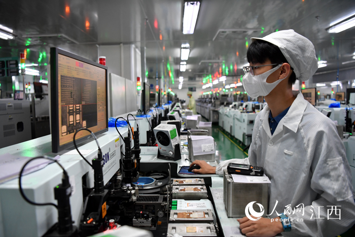 在南昌市經開區一家生產芯片的企業內,工人正在作業。人民網時雨攝