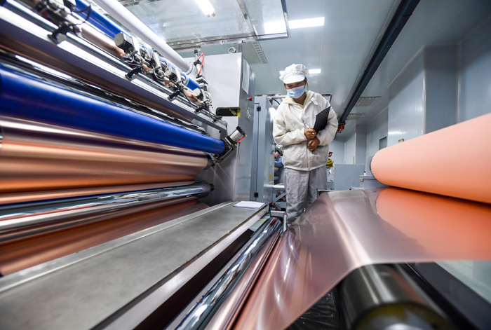 江西麥德豪新材料有限公司生產的銅箔厚度不到頭發絲的十分之一。聶軍洪 攝